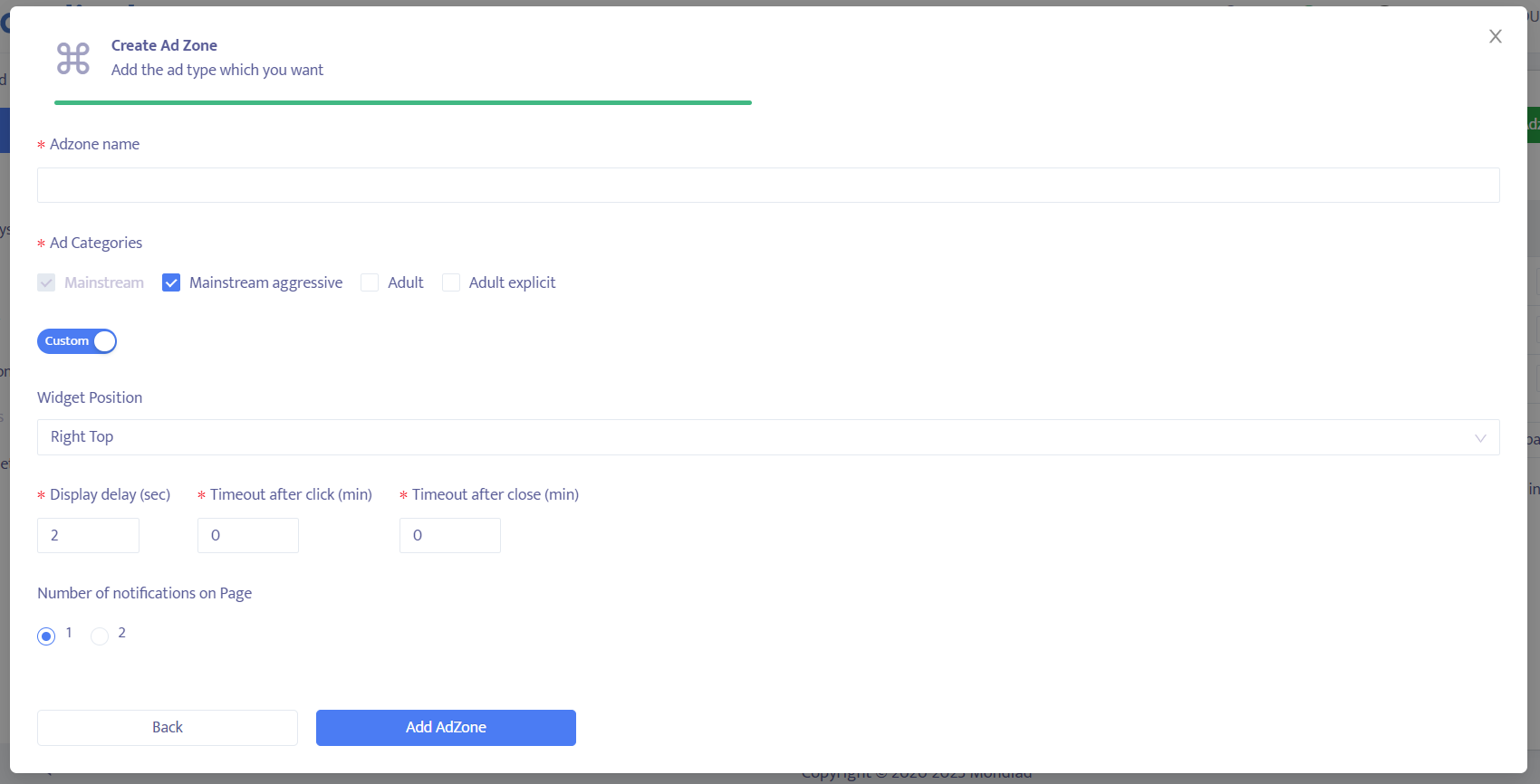 classic push ad zone mondiad
