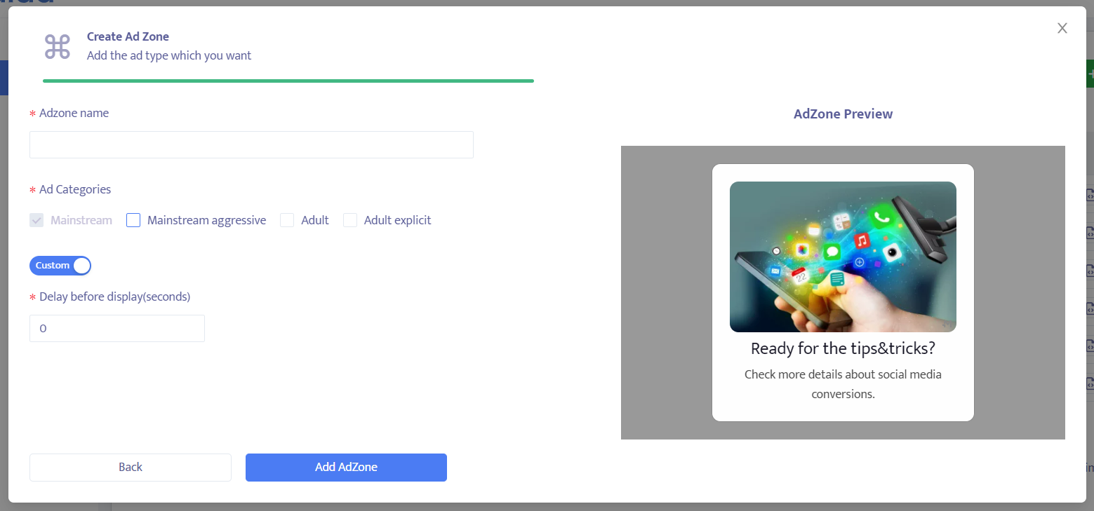 1 How to create an ad zone?