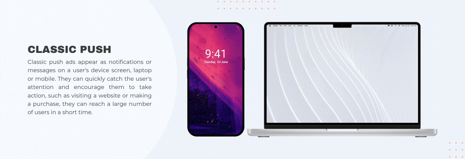 Classic Push ads are sent to users who’ve opted in via their browser and appear as notifications, even when the user is offline.
