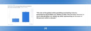 First of all, the market size is already big and still consistently growing in size and popularity, covering more on more space around the world. The gaming technology innovations boost casinos into new markets at lightning speed and this is just a part of this niche. According to Statista, “The size of the global online gambling and betting industry amounted to 63.53 billion U.S. dollars in 2022. This has been forecast to rise to 184.28 billion U.S. dollars by 2032, representing an increase of 190 percent within a decade.”