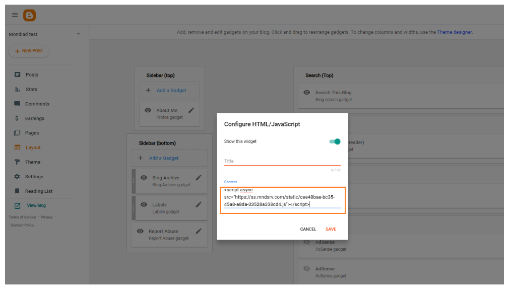 How to integrate the Mondiad ad code into your Blogger website!