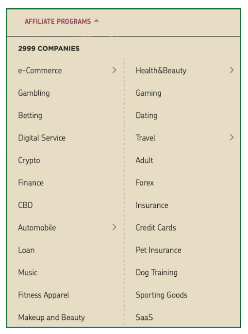 The Affiliate Programs section is where the magic happens. They’ve got a massive directory of programs in every niche imaginable, from nail-biting gambling sites to heart-fluttering dating apps.