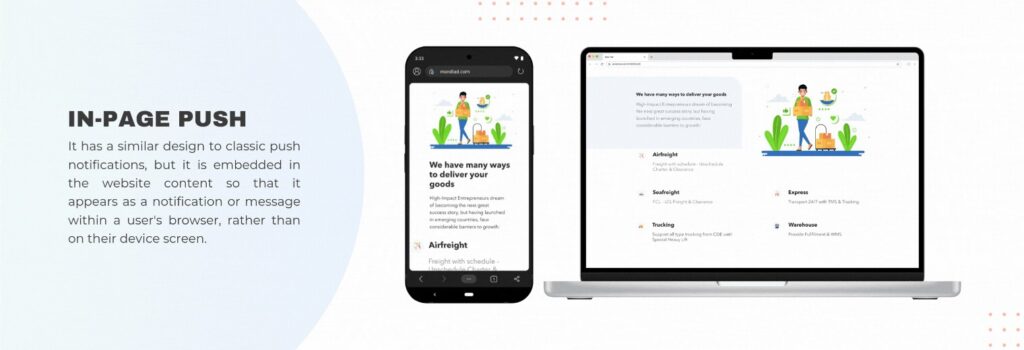 These formats are less intrusive and feel more natural to users, which encreases engagement and improves the chances of conversion. They allow brands to communicate their messages without disrupting the browsing experience. Mondiad’s platform is built around these high-engagement formats, offering a “clean” way to reach users who have already opted-in to receive information, ensuring your message lands on fertile ground.