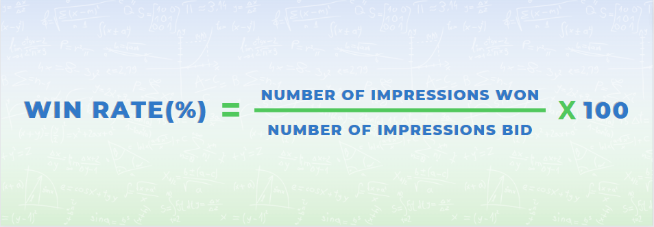 The ad campaign win rate is a metric or key performance indicator (KPI) measuring the percentage of ad auctions that an advertiser wins, resulting in their ad being displayed to viewers. More precisely, it measures the number of impressions won over the number of impressions bid.