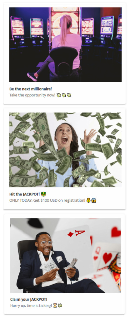 • Most ad viewers are men, so use HQ pictures representing cash and attractive women.