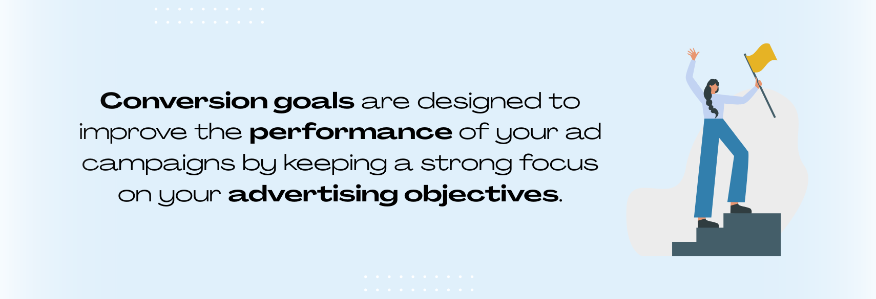 Conversion goals are designed to improve the performance of your ad campaigns by keeping a strong focus on your advertising objectives.
