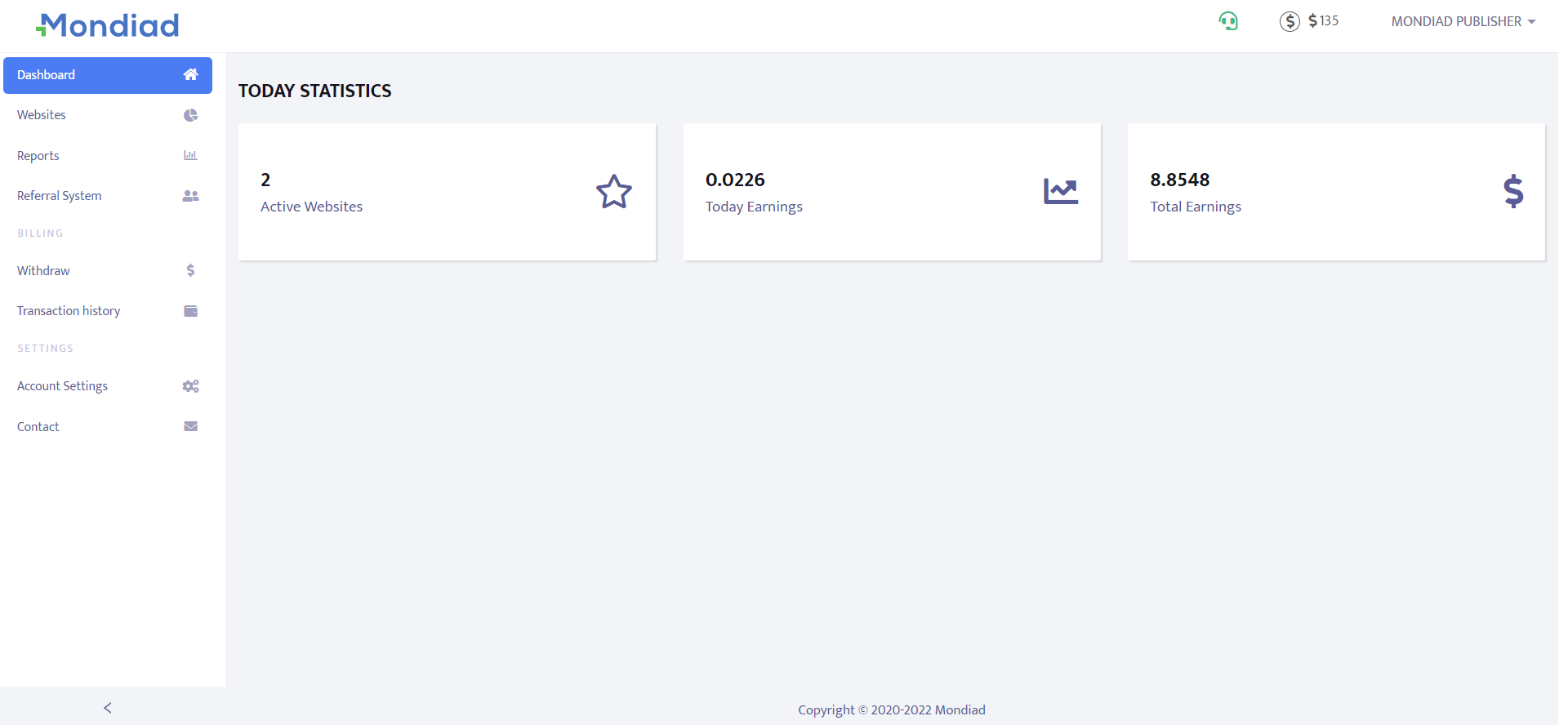 Once you log in, you will see your Dashboard with the daily statistics about your earnings: