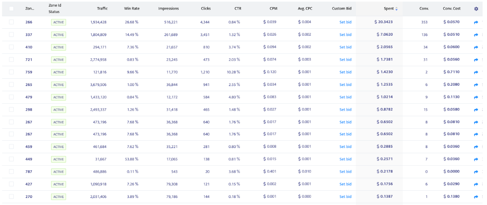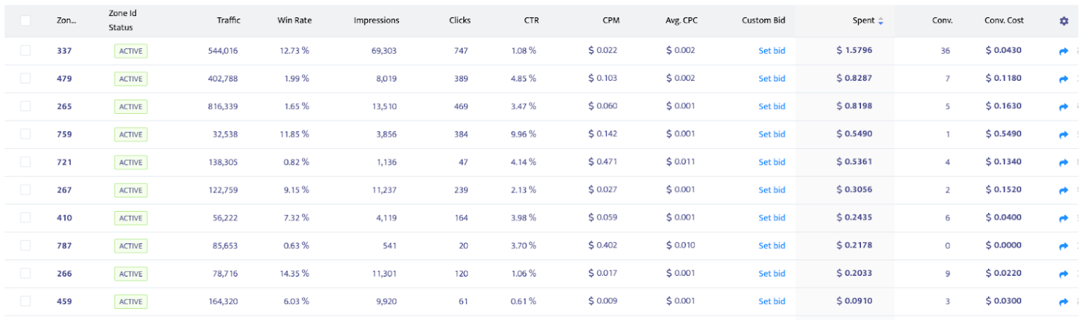 This time, we can see that the system is no longer bidding on zones that are underperforming.