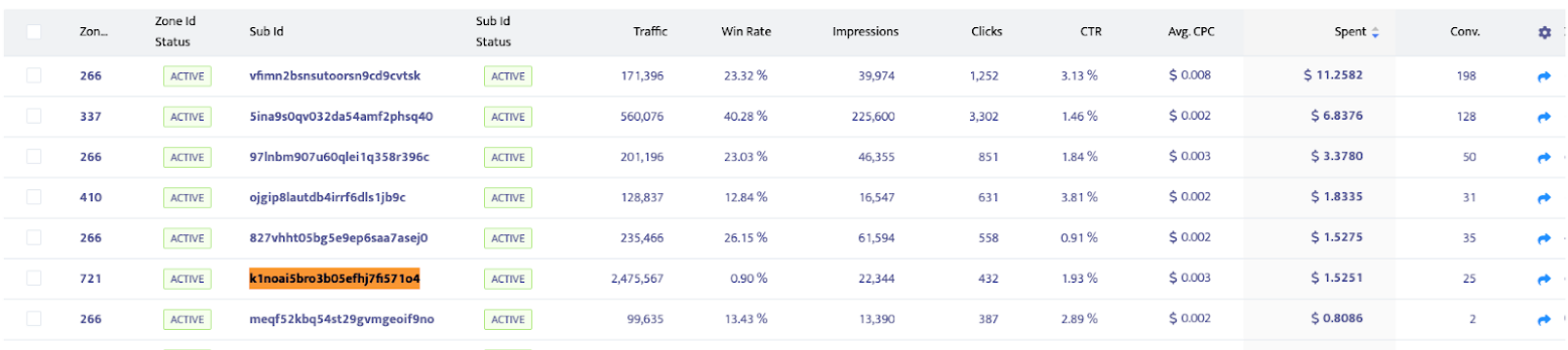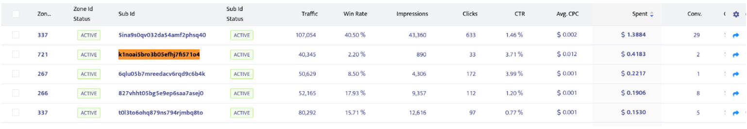 Here is an interesting example, to be more clear: The SubID highlighted has started with an Avg. CPC bid of “$0.012” and after 1 month it was decreased to “$0.003” because it did not perform as expected.