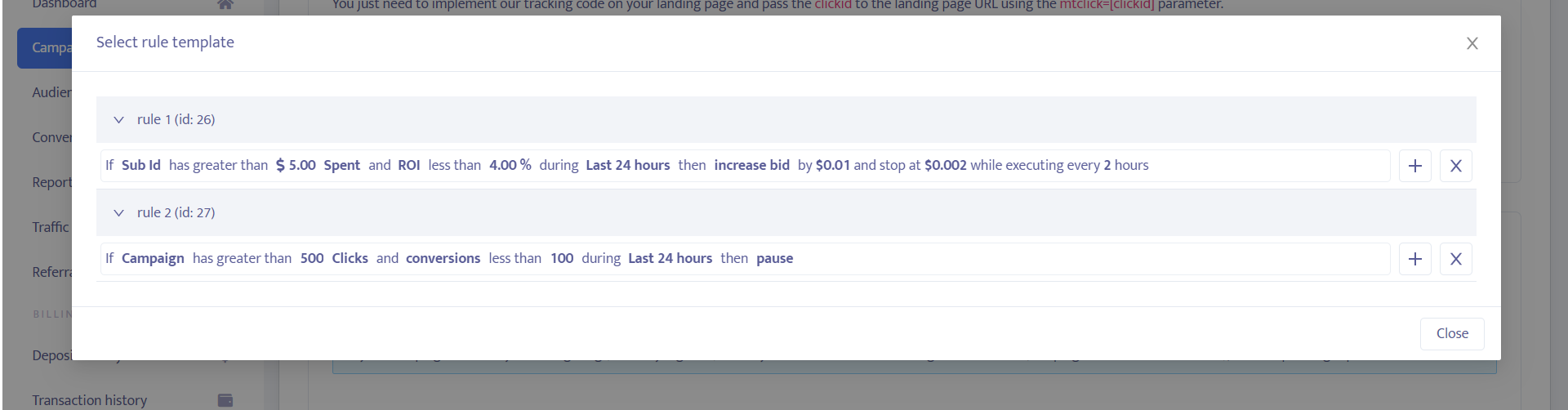The primary purpose of ad optimization rules is to enhance campaign efficiency, maximize return on investment (ROI), and ensure that ads are shown to the most relevant audience. In Mondiad you can automate the disabling of low-performing creatives, subids, zoneids and campaigns. You can learn all about them via our Help Center.